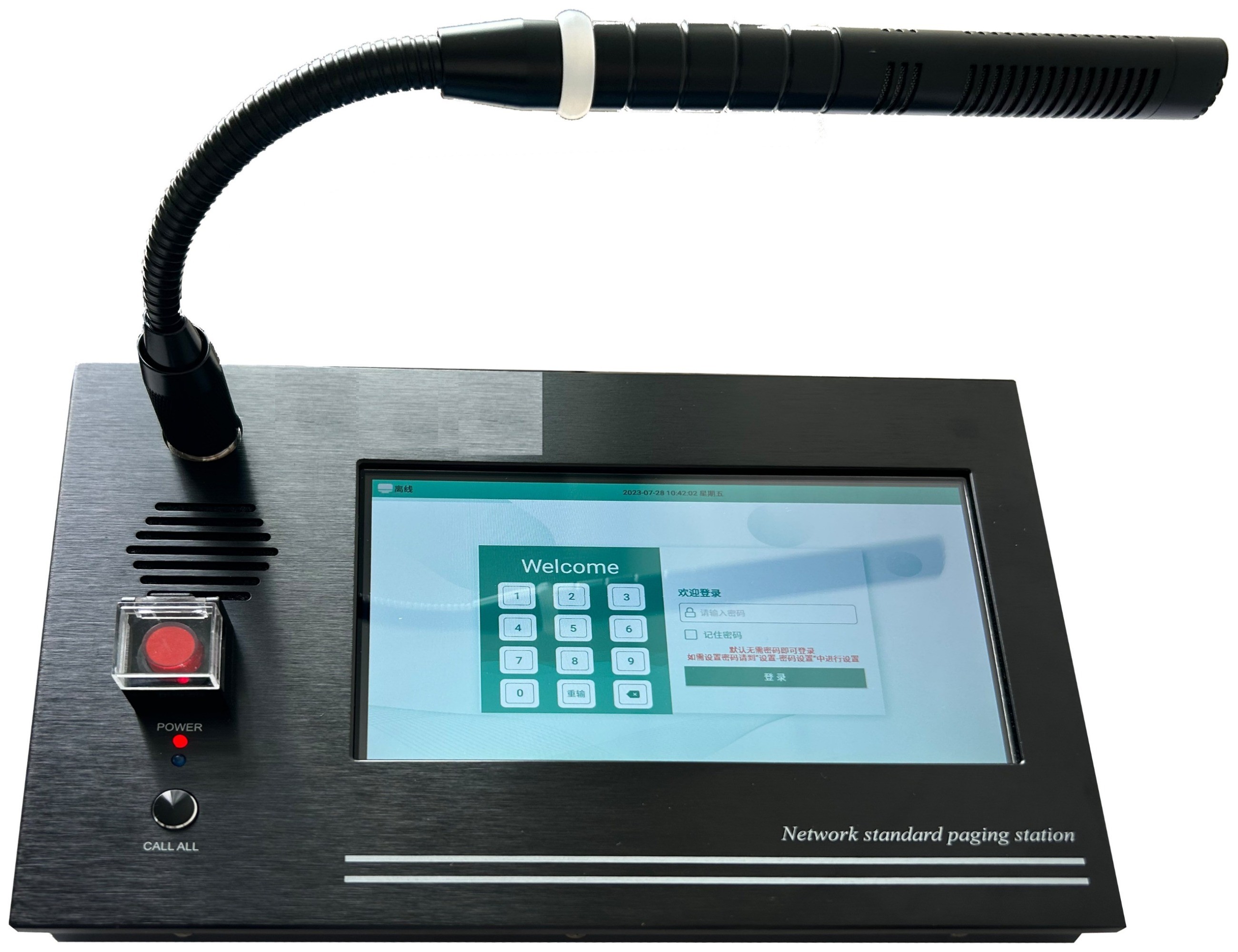 七英寸真彩觸摸彩屏,圖形人性化界面直觀顯示,鋁合金高檔拉絲工業面板設計,采用高保真動圈話筒設計